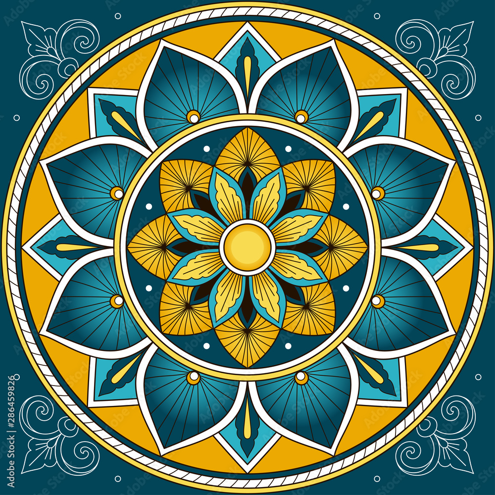 Spanish Tile Pattern Floor Vector With Mosaic Flower Print Big Wall Stickers Tablecloth Moroccan Mexico Myloview Com